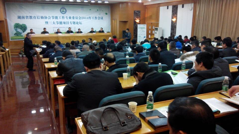 2014年12月25日至27日梁鐵虎、李建球代表本公司參加吉首大學召開的《湖南省教育后勤協會節能工作專業委員會2014年工作會議暨三大節能項目專題論壇》,共有38家單位參加本次會議專題論壇,與會代表240人。