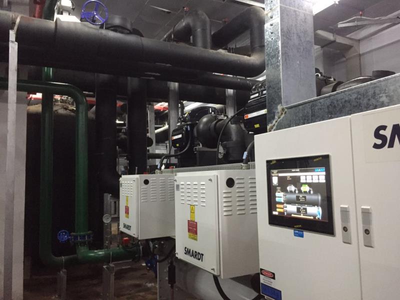 工廠原有的傳統螺桿式冷水機組,耗能情況不樂觀,為企業浪費了大量的資金。銘漢股份為其更換兩臺600RT磁懸浮冷水機組,使其COP值大幅上升,維持原有制冷量的前提下,耗能大大減少。